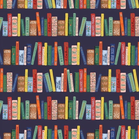 Curio, Book Club, Navy Metallic Fabric, RP1103-NA2M, By Rifle Paper Co, for Cotton+Steel, sold by the 1/2 yard or the yard