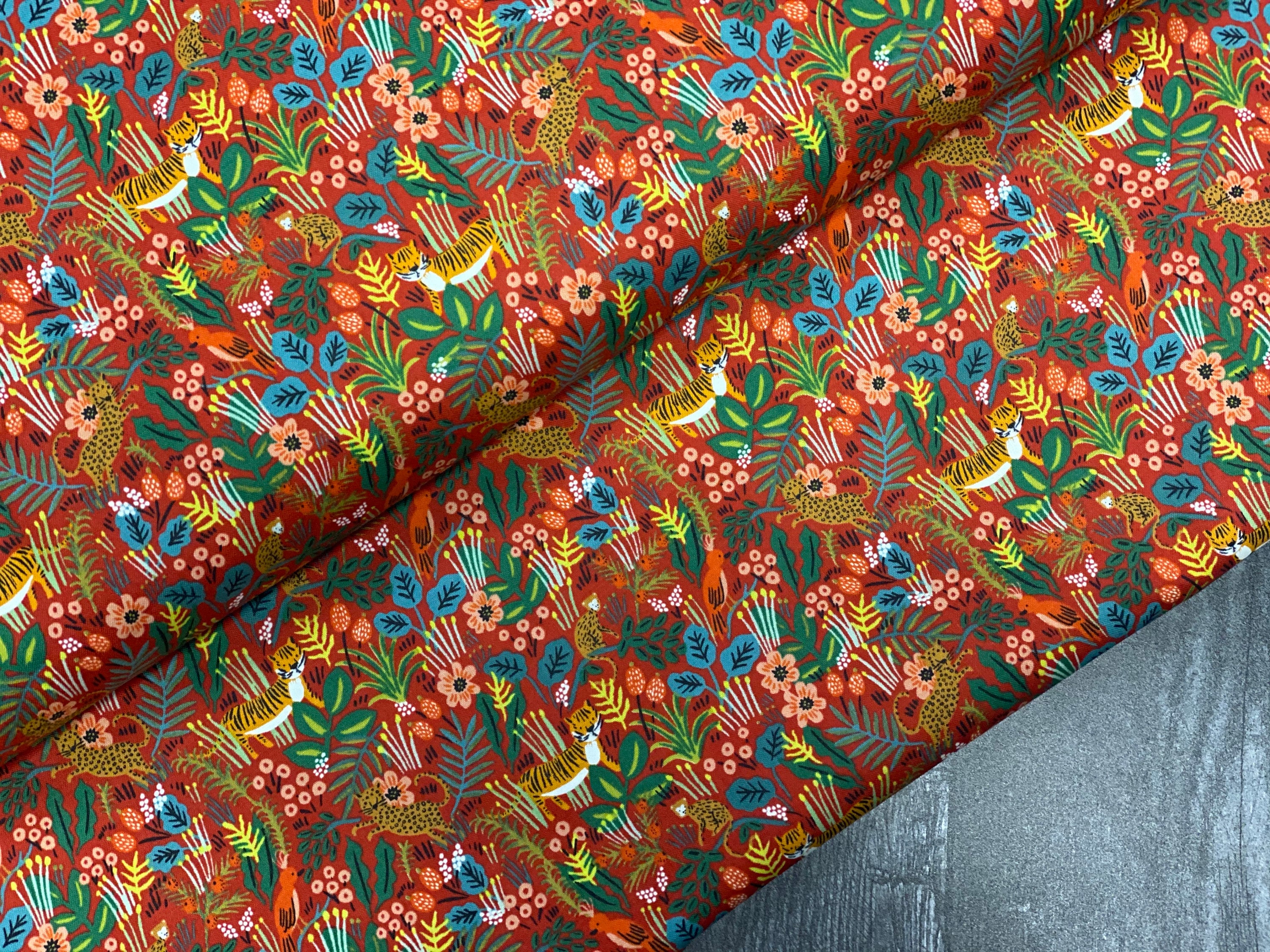 Menagerie-Jungle-Red-by Rifle Paper Co- for Cotton and Steel,sold by the yard